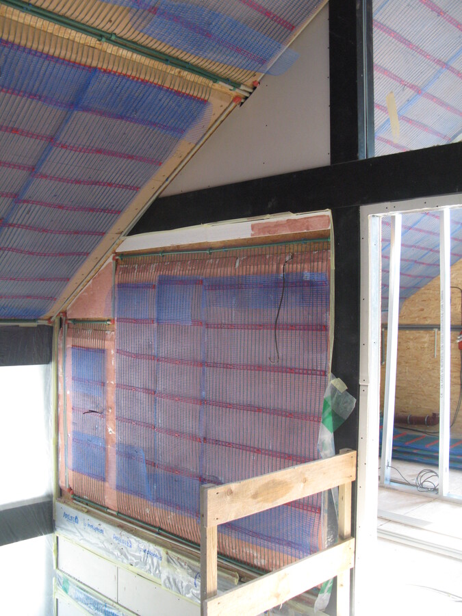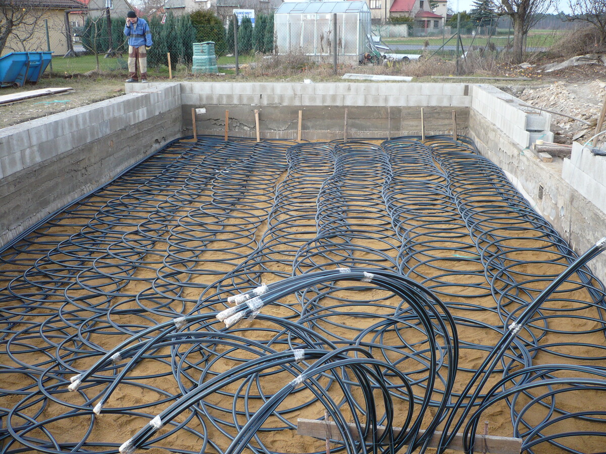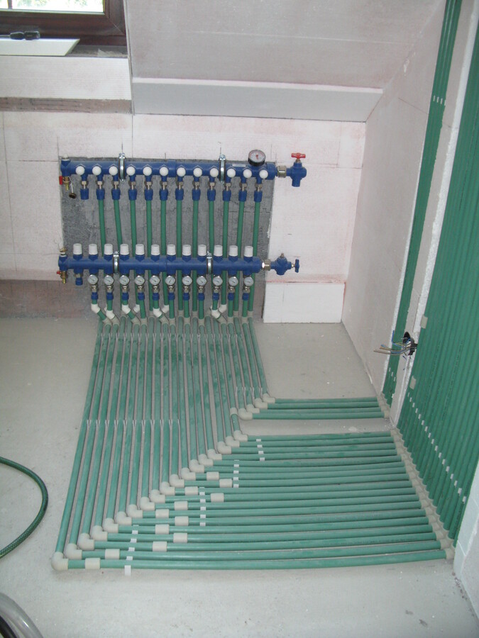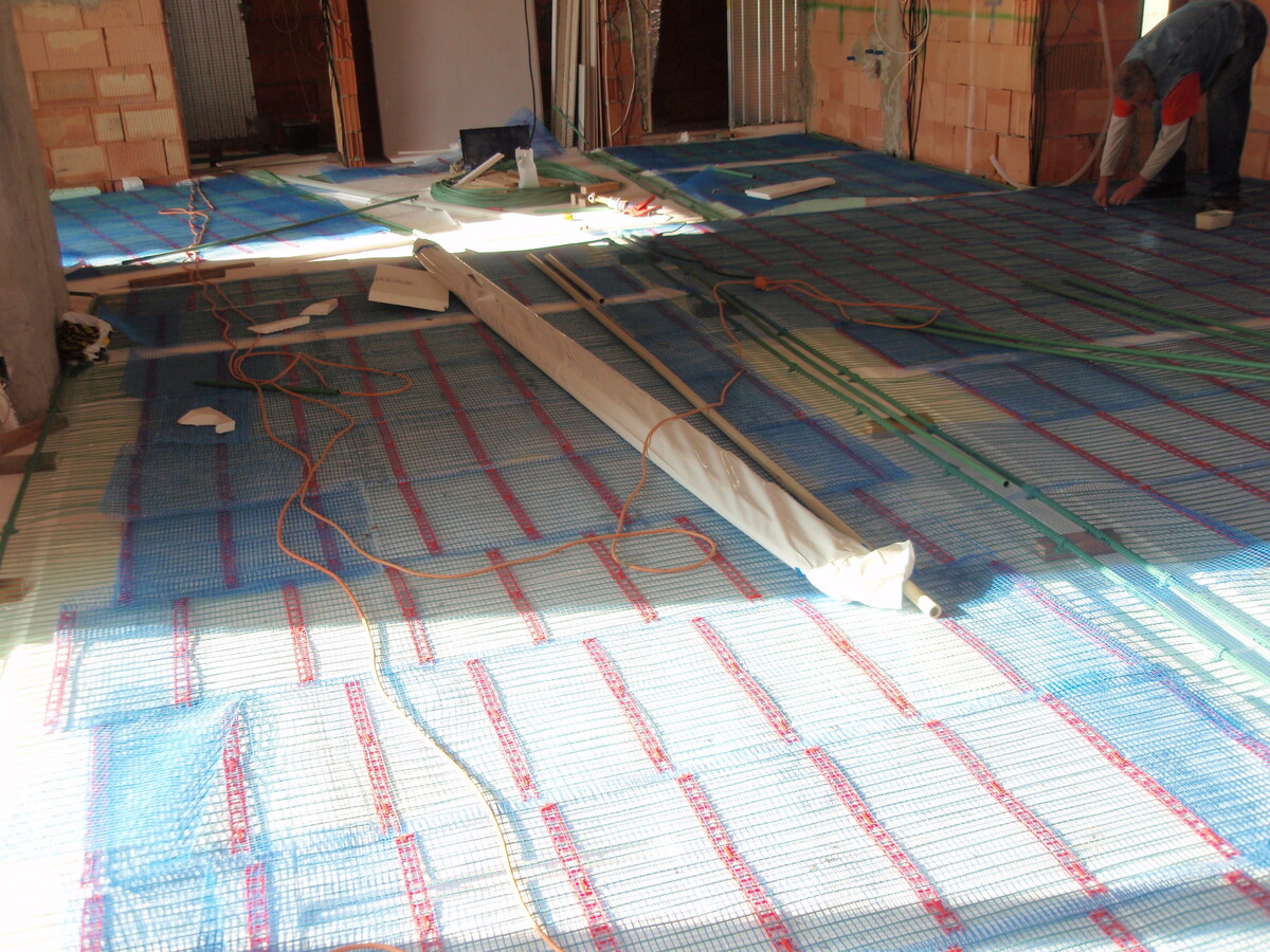 Plnoplošná instalace kapilárních rohoží, solární kolektory, tepelné čerpadlo země/voda, zemní akumulátor pod základovou deskou rodinného domu.