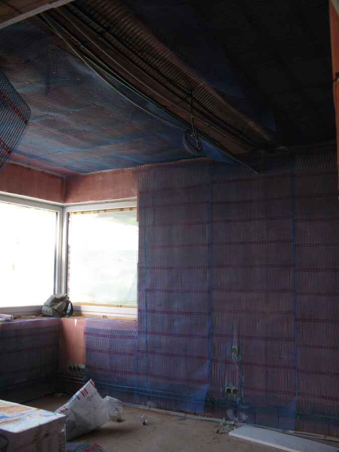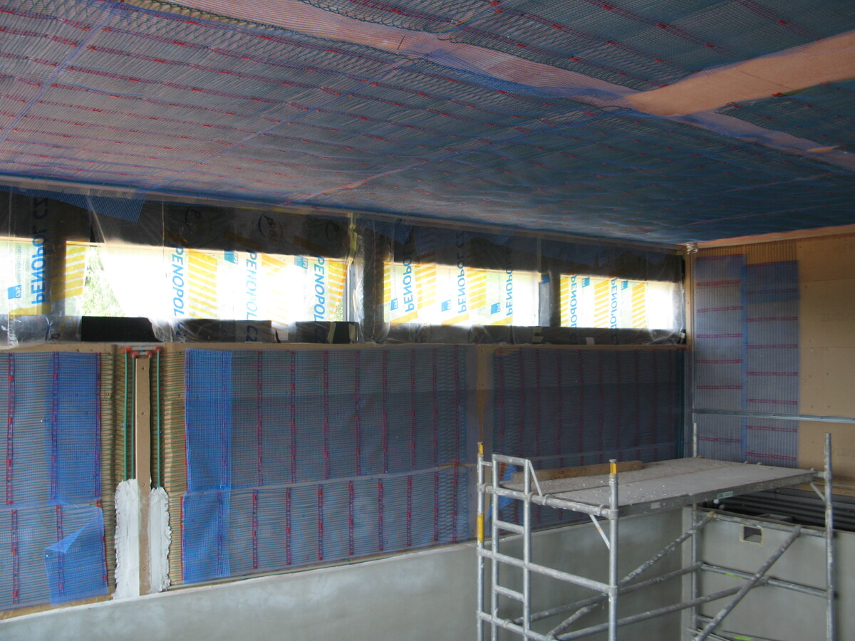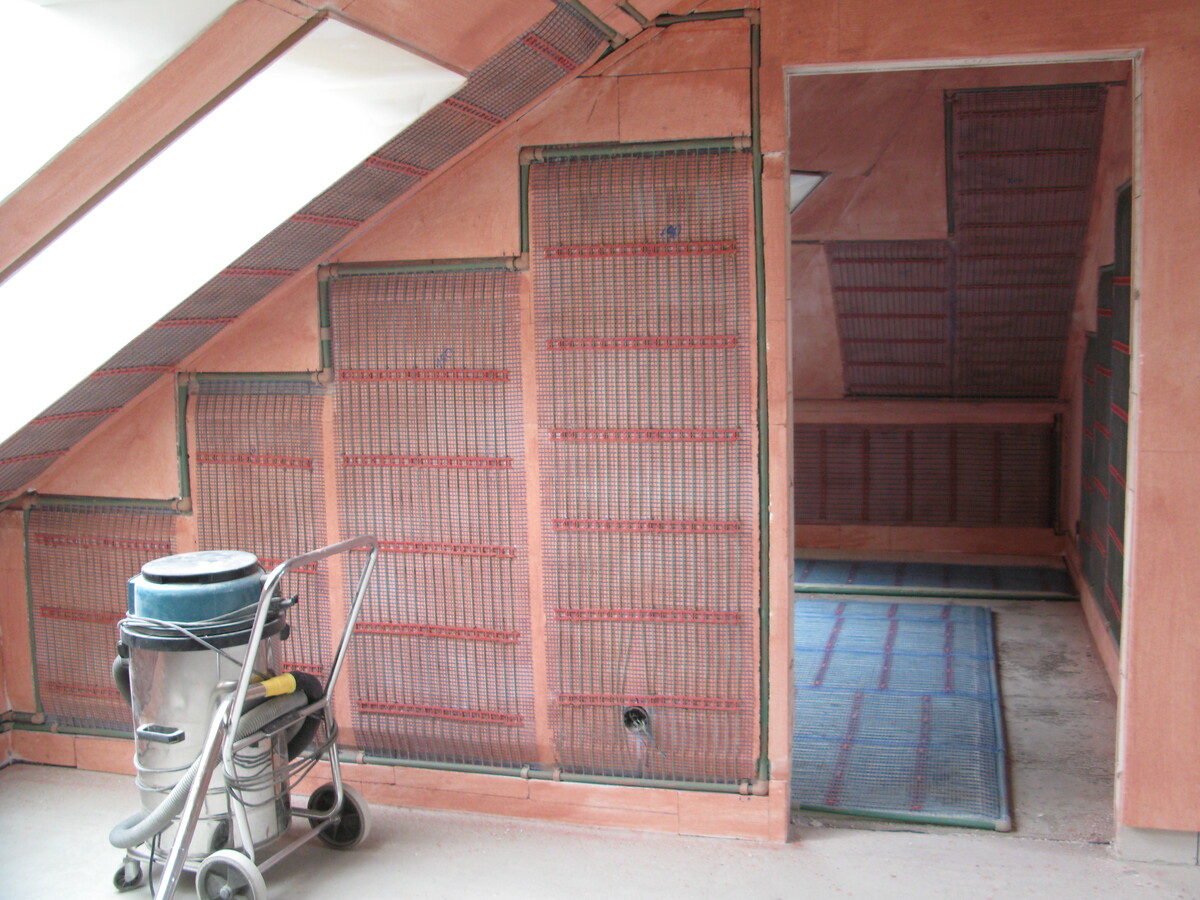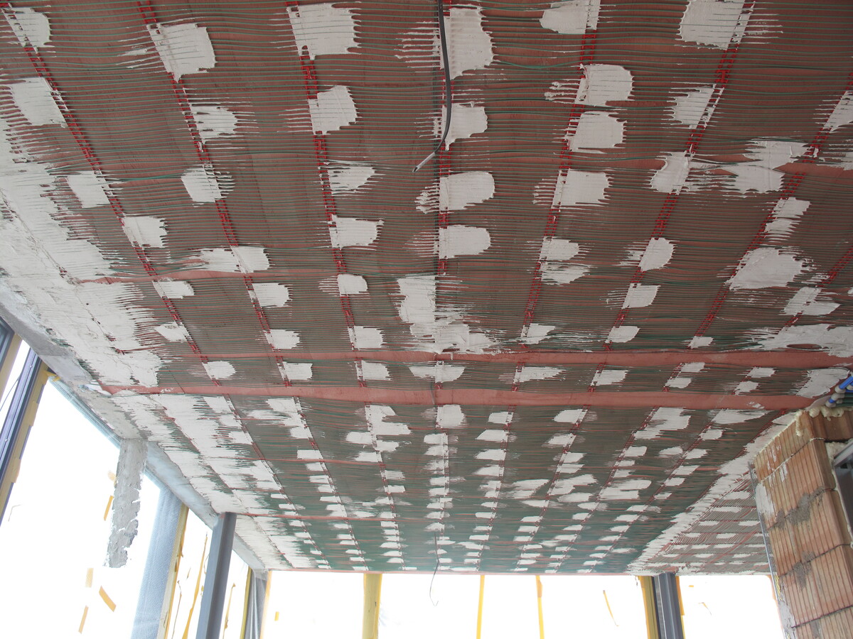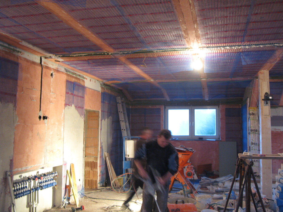 Instalace kapilárních rohoží do podlahy a stropu, tepelné čerpadlo vzduch/voda