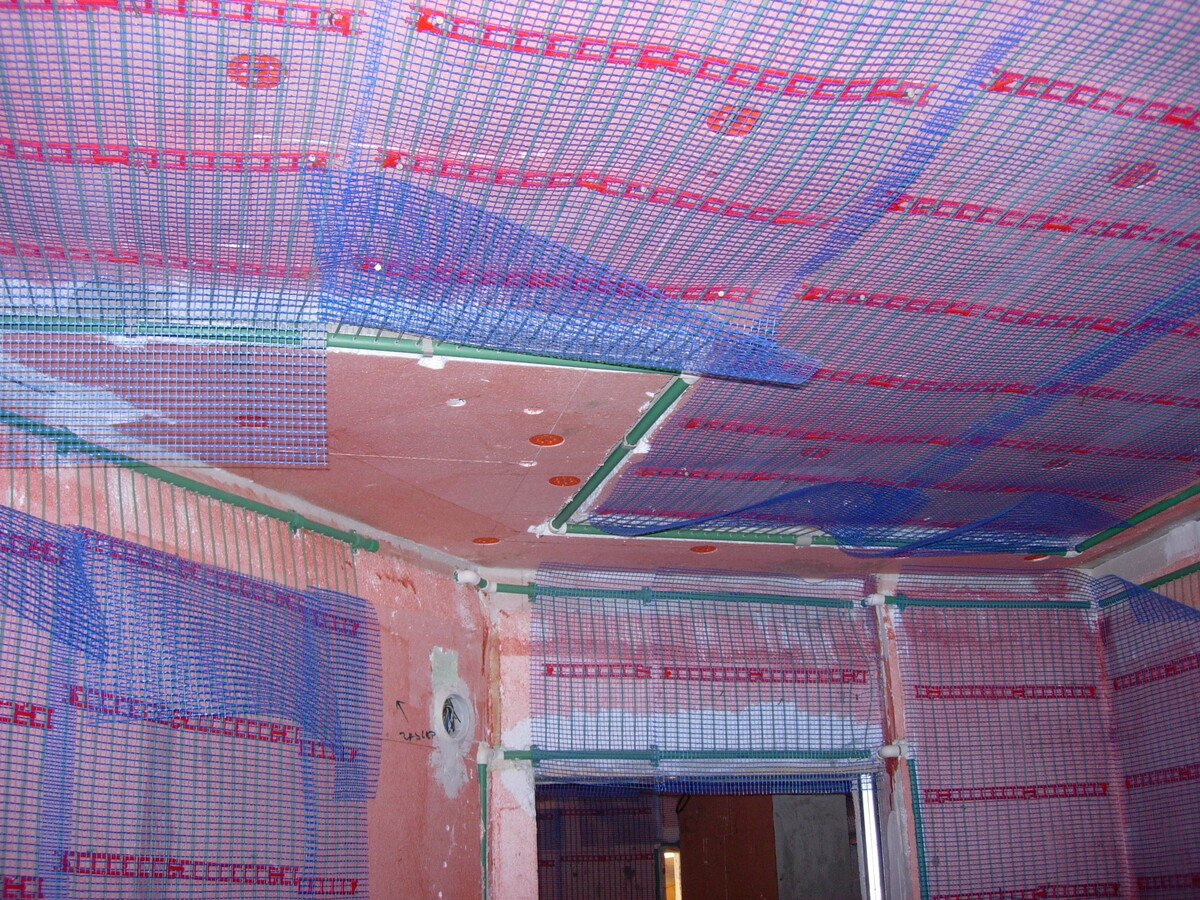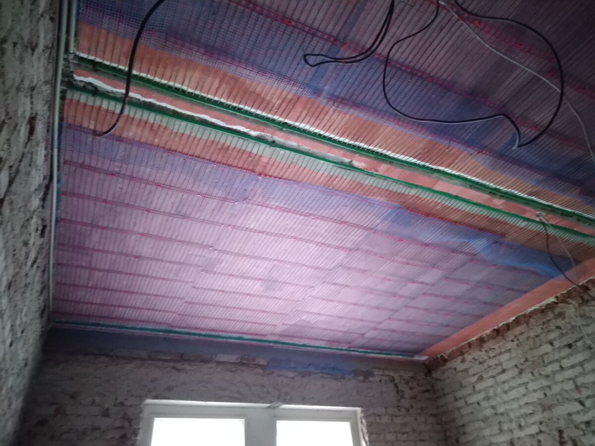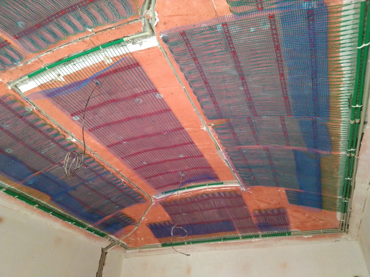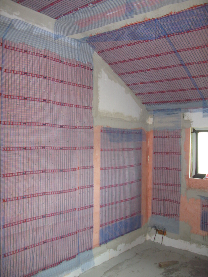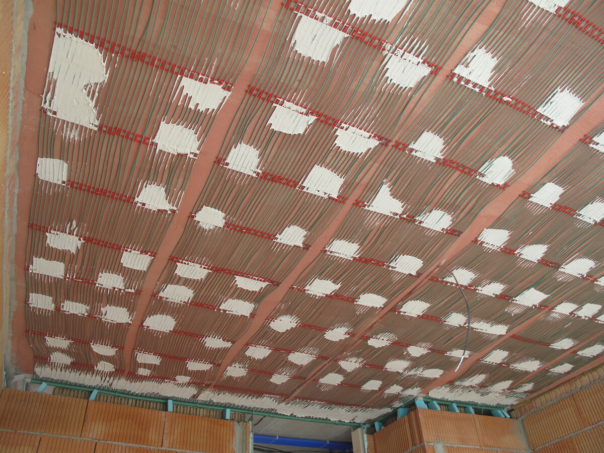 Instalace kapilárních rohoží do podlahy a stropu, tepelné čerpadlo vzduch/voda