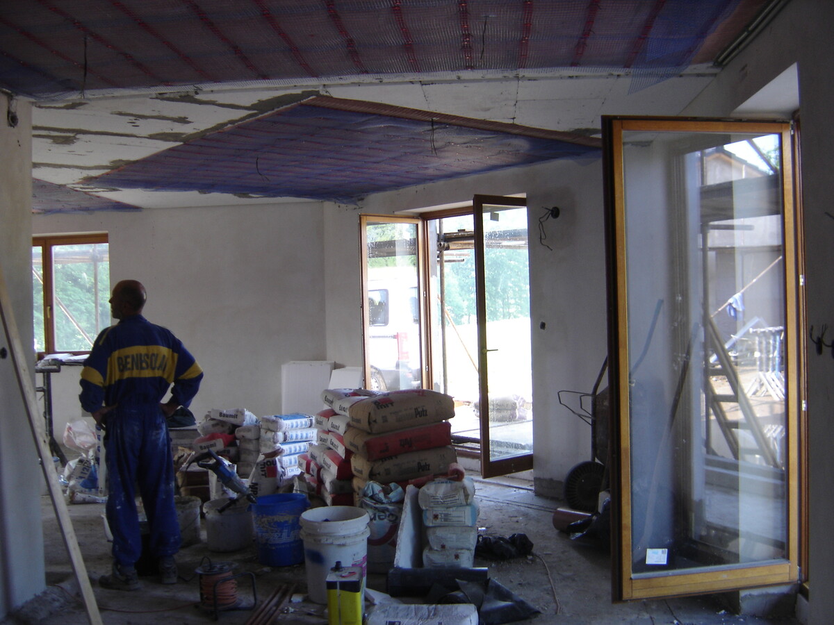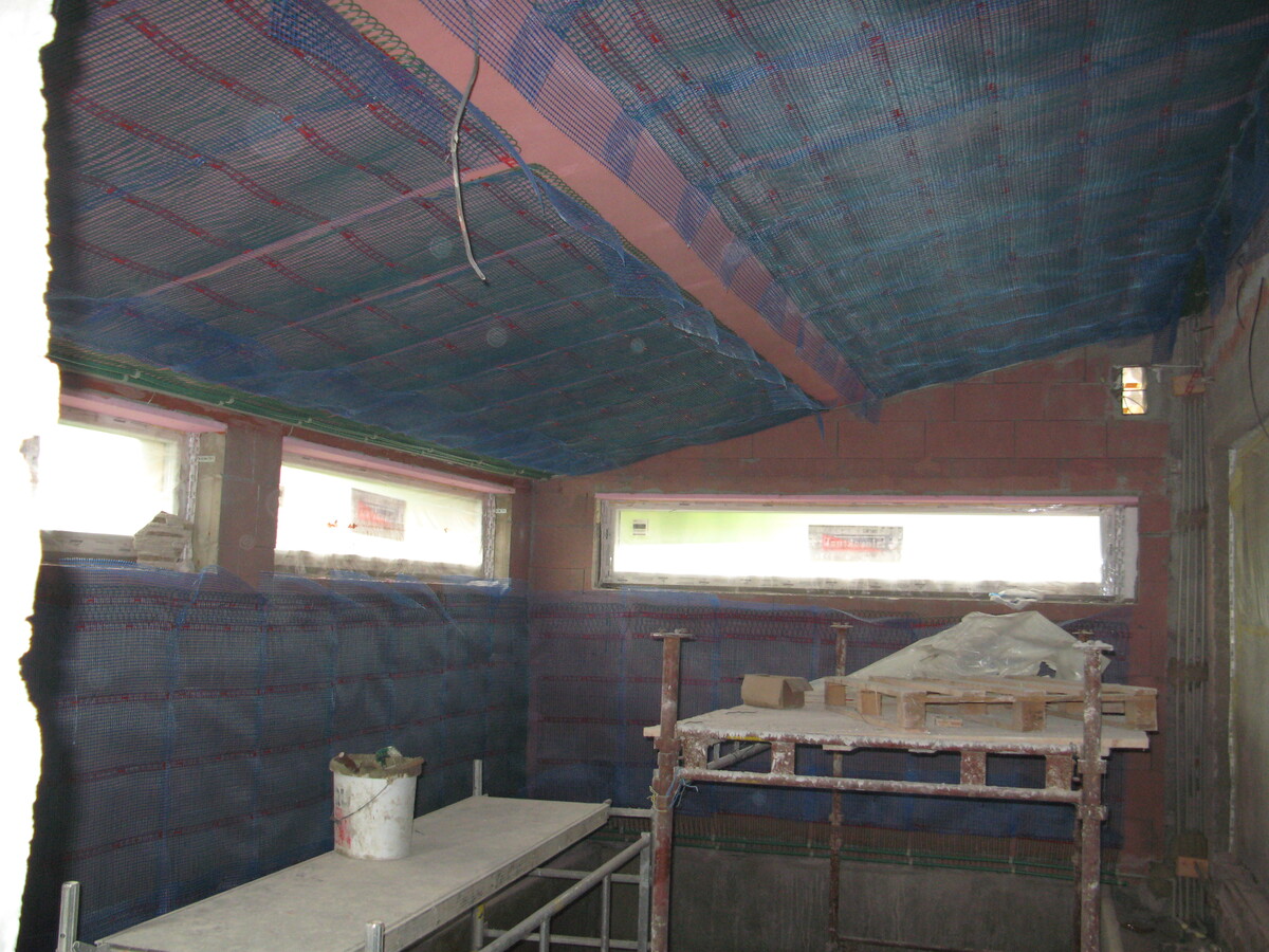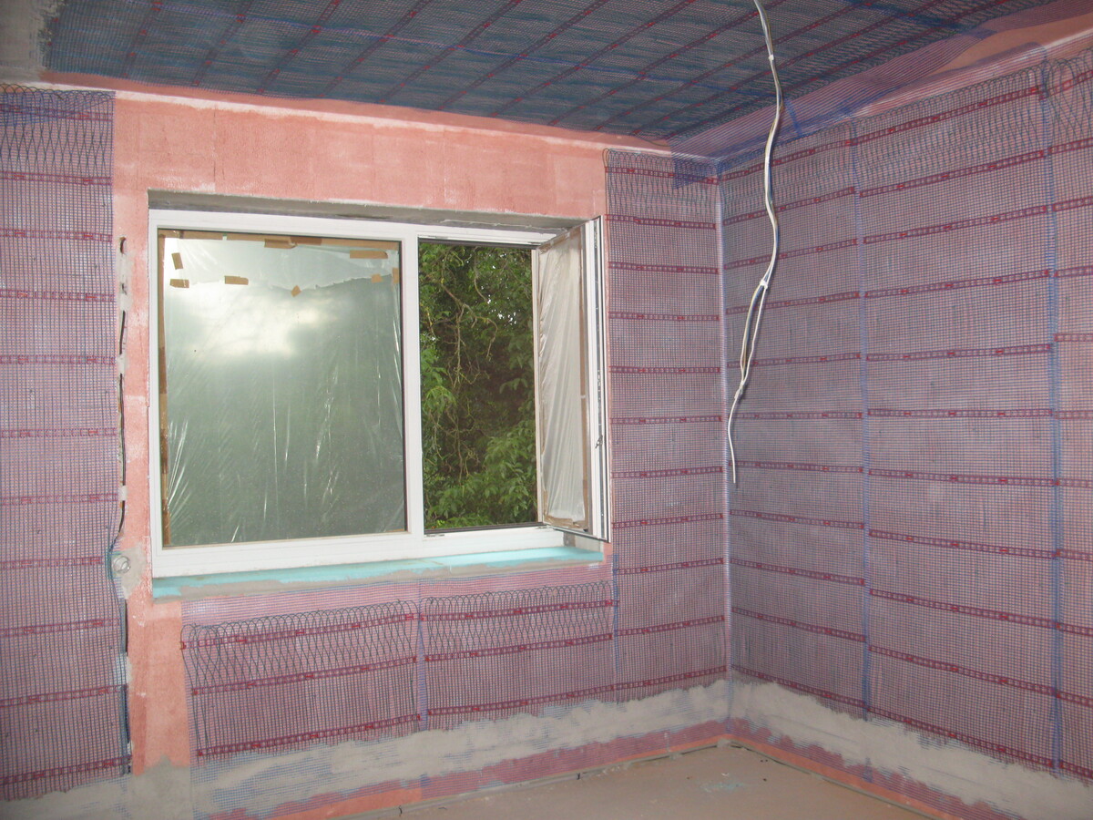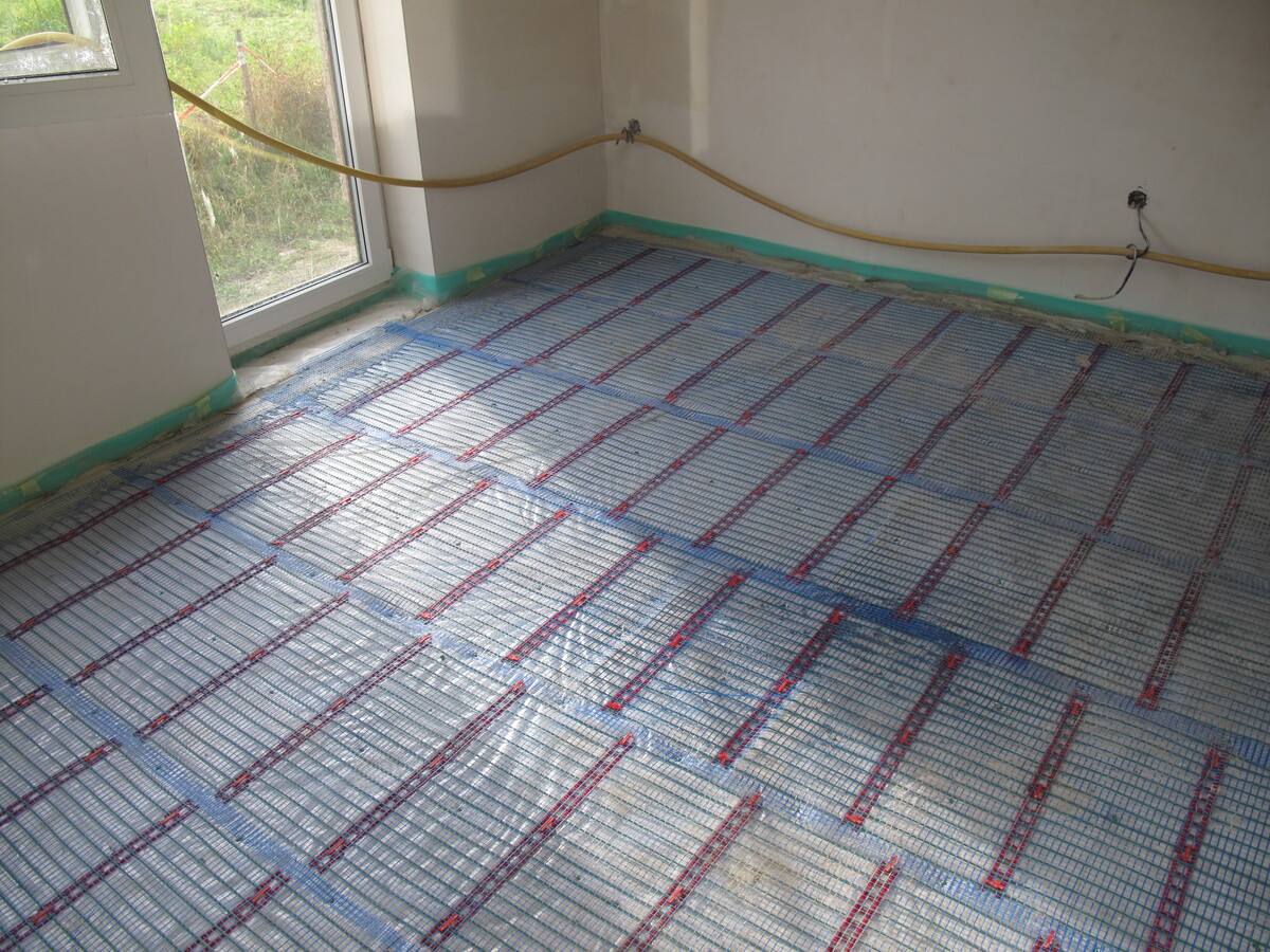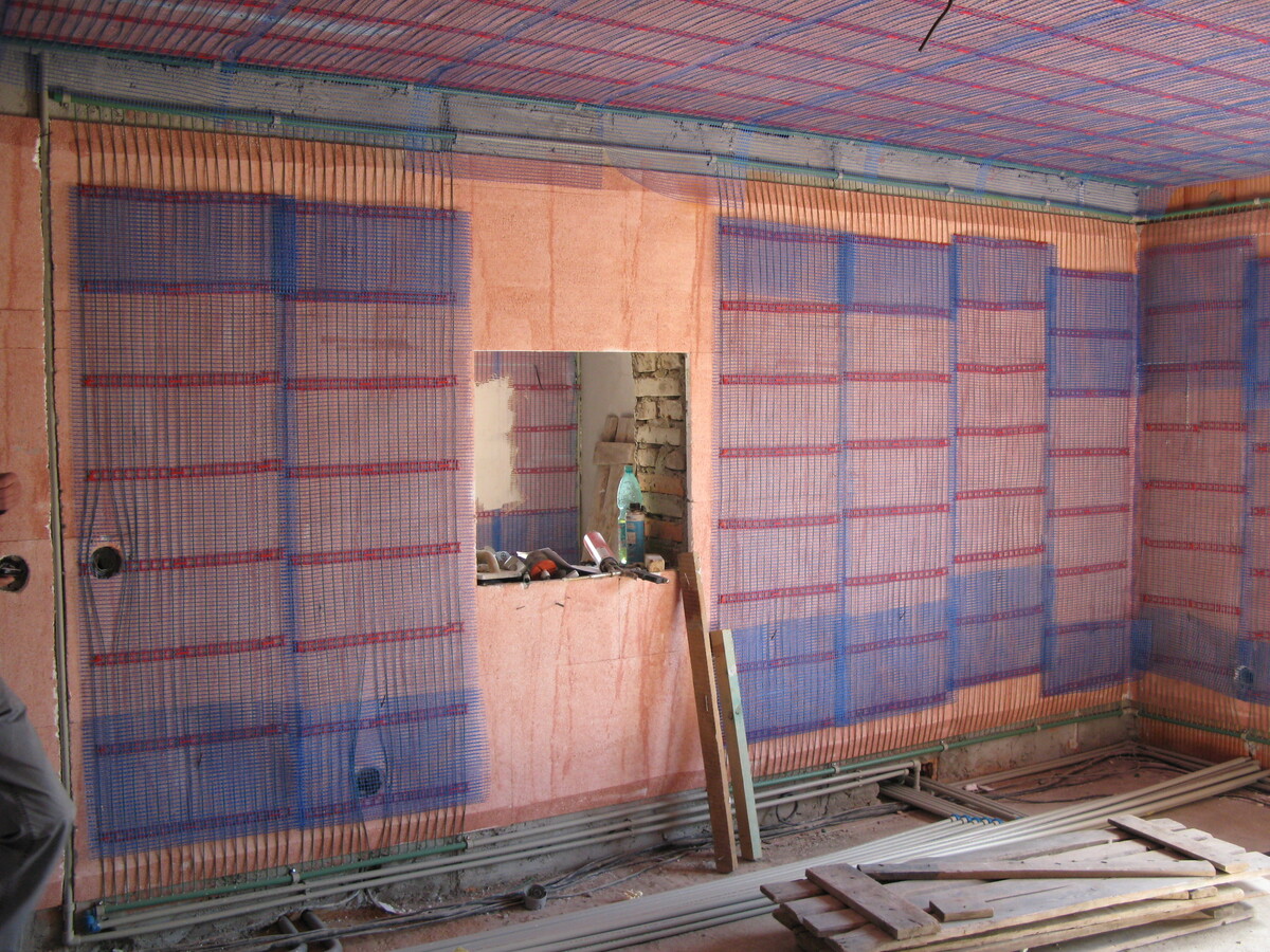 Instalace kapilárních rohoží do podlahy a stropu, tepelné čerpadlo vzduch/voda