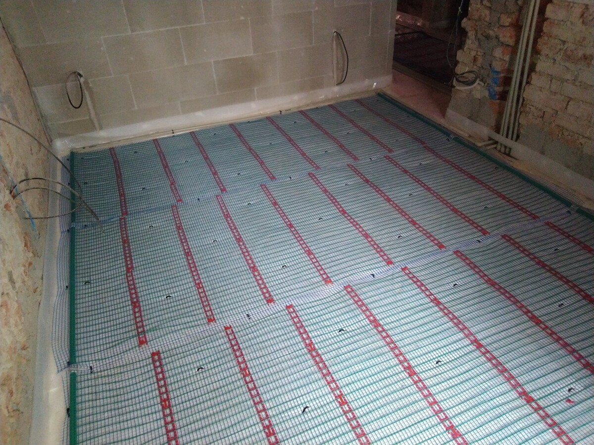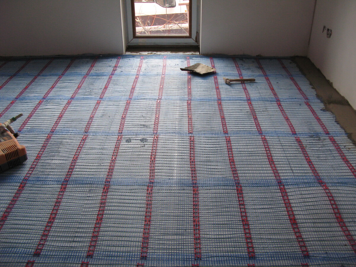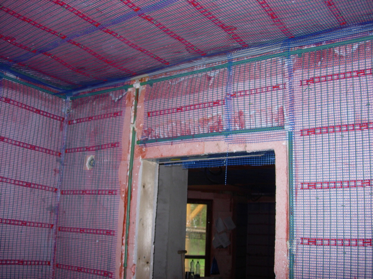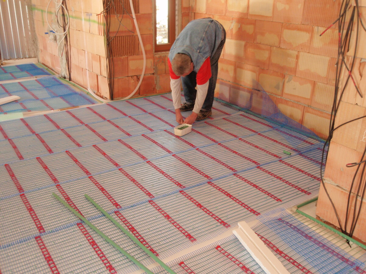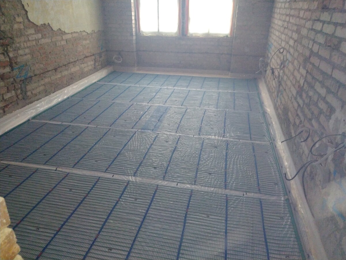 Instalace kapilárních rohoží do podlahy a stropu, tepelné čerpadlo vzduch/voda