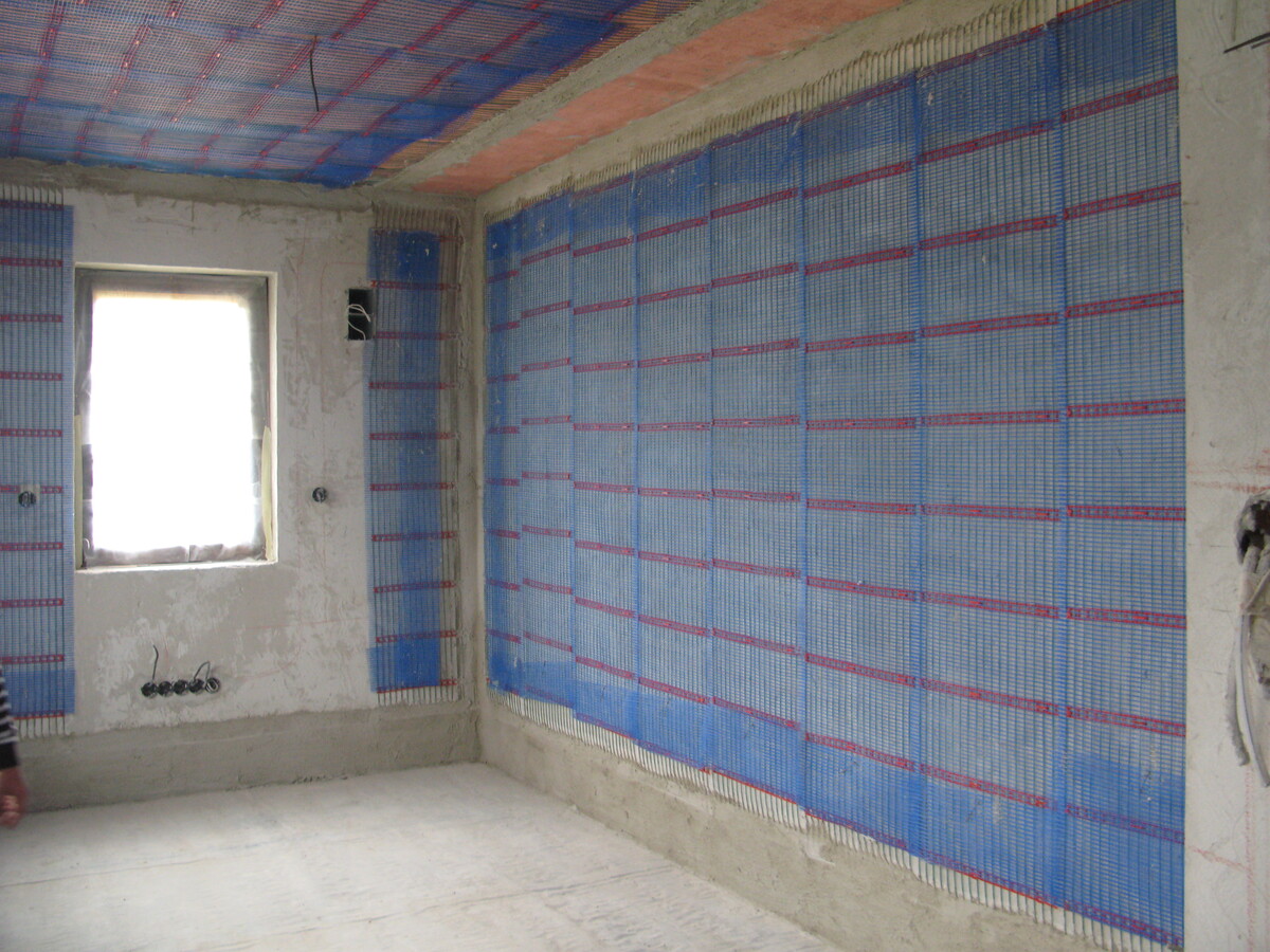 Plnoplošná instalace kapilárních rohoží, pouze vytápění, zdroj tepla CZT.