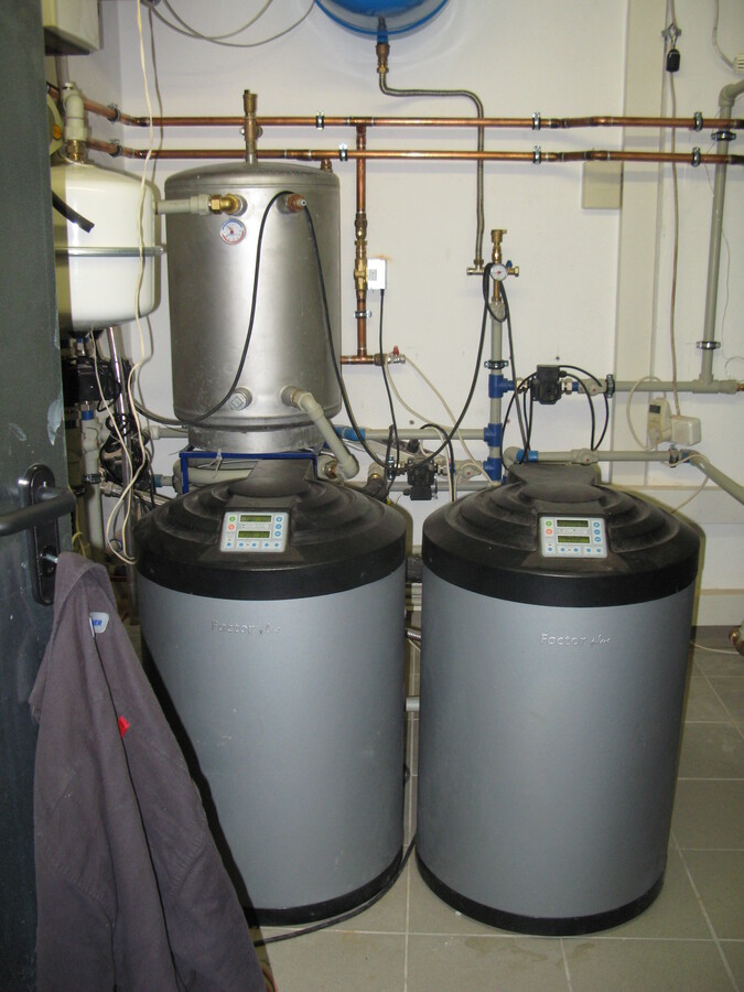 tepelné čerpadlo voda/voda + kondenzační plynový kotel, solární termické kolektory, vnitřní bazén.