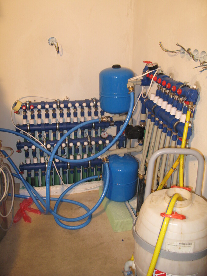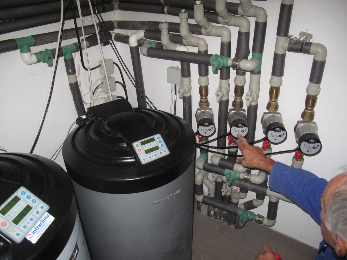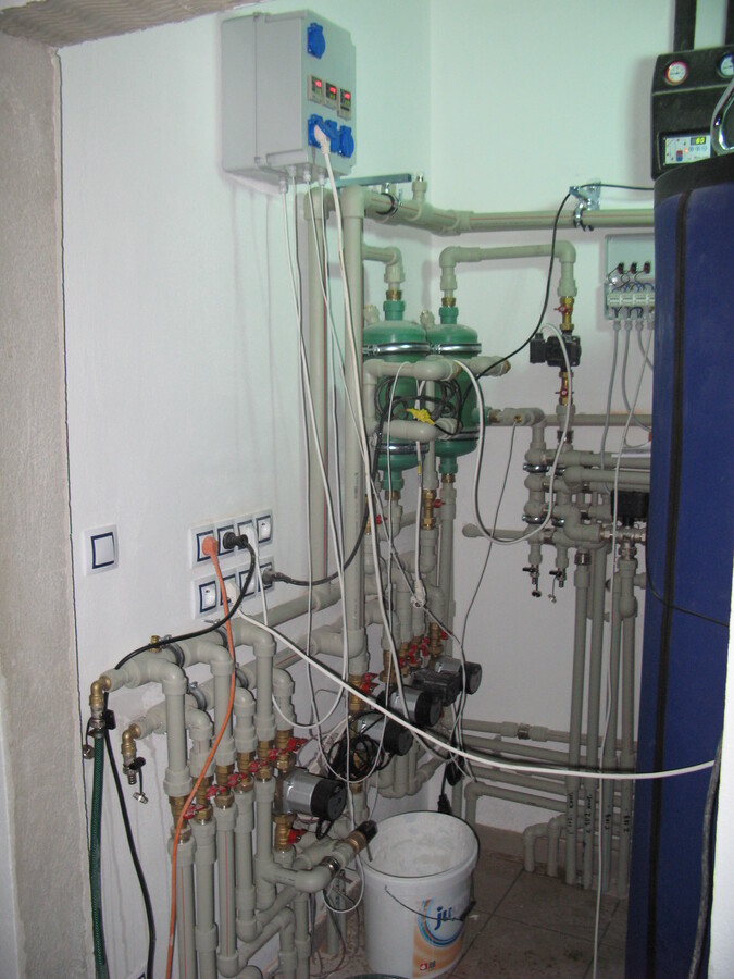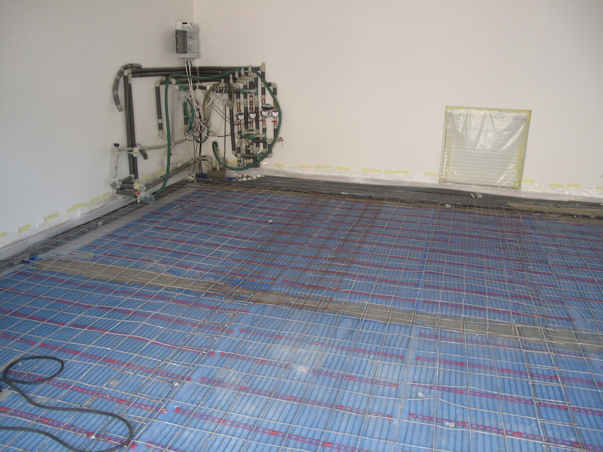 Plnoplošná instalace kapilárních rohoží, solární kolektory, tepelné čerpadlo voda/voda.